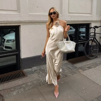 Abito Vintage da donna 2024 estate senza maniche nuovo elegante moda in raso di seta con Maxi lunghezza e abito traspirante per donna