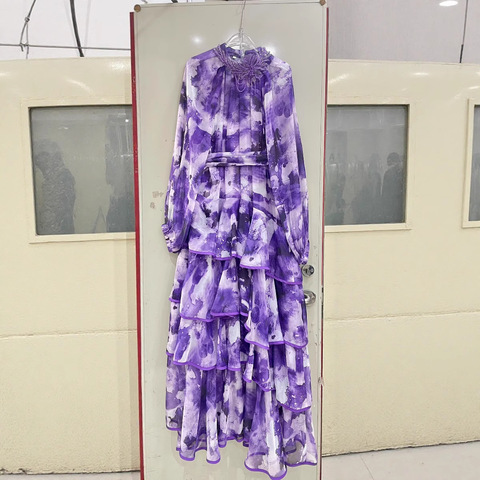 2025 mùa hè bộ sưu tập thanh lịch hoa in eo ăn mặc chất lượng cao voan giản dị sàn chiều dài cho thương mại nước ngoài bán buôn