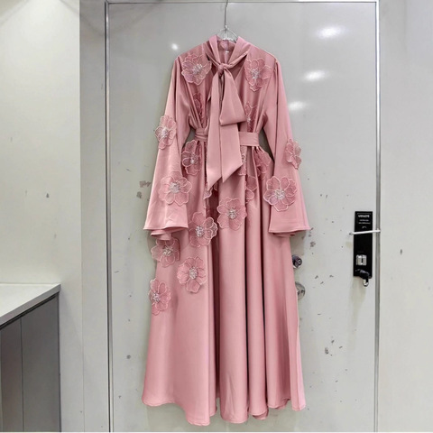 Úc xuyên biên giới thực bắn quá khổ váy thiết lập đàn hồi eo Craft Rose Bloom in cộng với kích thước dài tay áo hồi giáo Ăn mặc